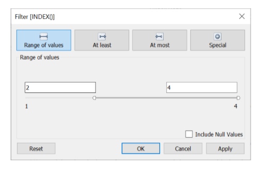 Теперь выбираем диапазон от 2 до 4. Таким образом мы скроем 2016 год, который имеет индекс 1.
